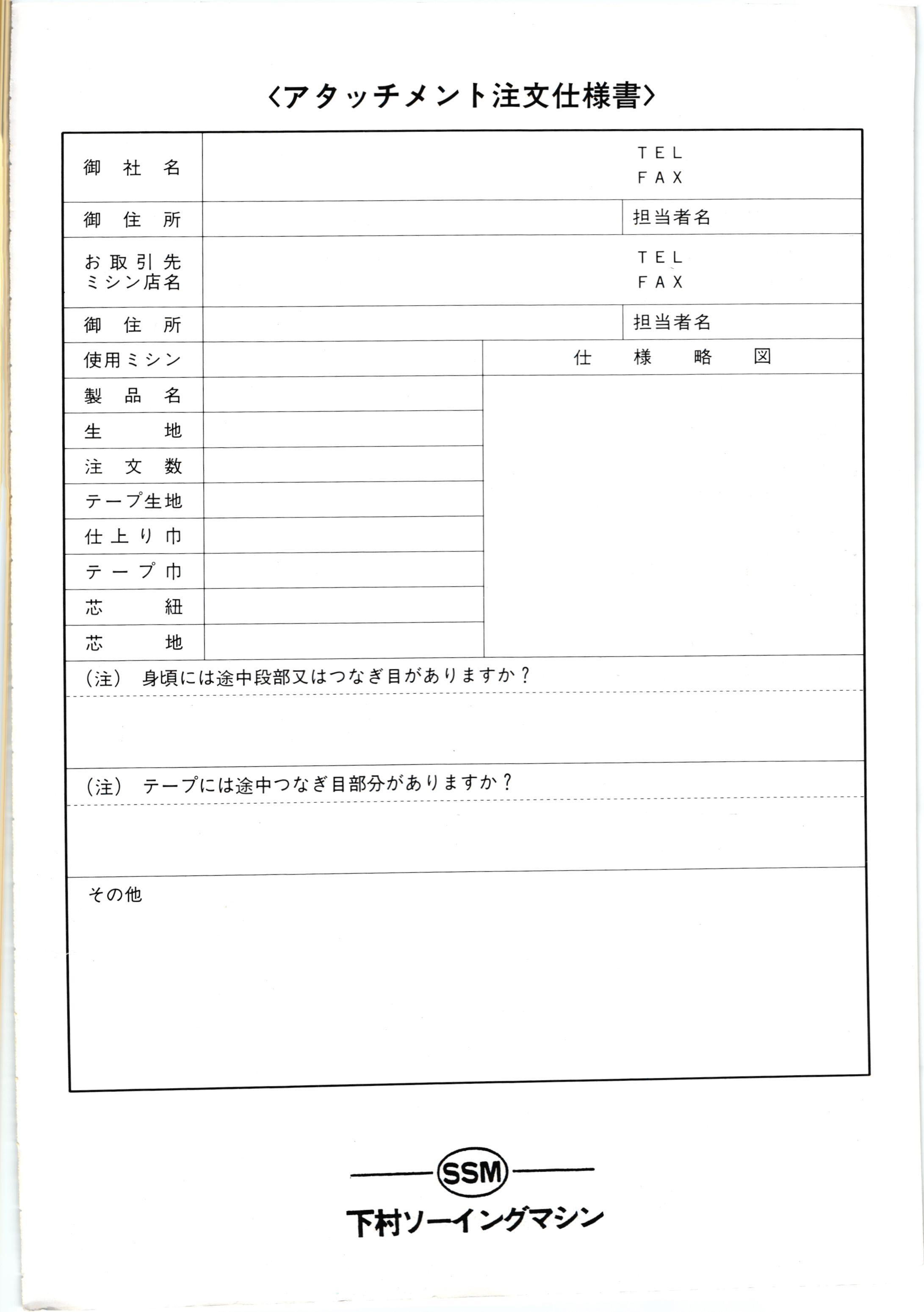 下記アタッチメント注文仕様書記入例を御覧いただき、アタッチメント注文仕様書にご記入ください。その後お見積りをさせていただきます。